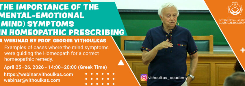 Topic: THE IMPORTANCE OF THE MENTAL-EMOTIONAL ((MIND) SYMPTOMS IN HOMEOPATHIC PRESCRIBING – A WEBINAR BY PROF. GEORGE VITHOULKAS